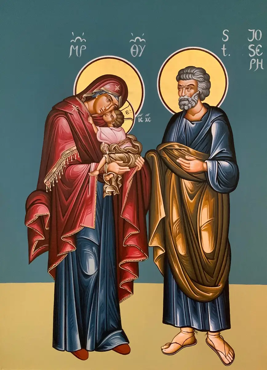 Saint Joseph the Betrothed was of the lineage of King David. He had four sons from his previous marriage: James, Judah, Joses, and Simon (or Symeon), and three daughters: Esther, Martha, and Salome, who was the mother of Saint John the Theologian. After he became a widower, Saint Joseph led a life of strict temperance. He was chosen to be the husband and guardian of the Most Holy Theotokos, who had taken a vow of virginity.
