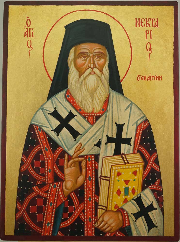 Святий Нектарій Егінський (1846–1920): грец.: Άγιος Νεκτάριος Αιγίνης, митрополит Пентапольський і Чудотворець Егінський, був офіційно визнаний святим Вселенським Патріархатом Константинополя у 1961 році. День його пам'яті святкується щороку 9 листопада.